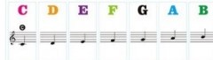 Barevné samolepky určené pro nejmenší děti umožňují snadné hraní a je jen na rodiči aby noty v písničce ovybarvil barevnou pastelkou a díte může jednoduše hrát podle barev jako například na xylofonu.